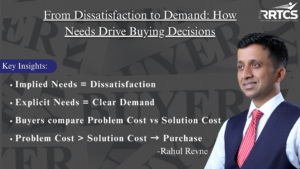 👉 Dissatisfaction → Problem Recognition → Cost of Problem > Cost of Solution → Explicit Need → Purchase